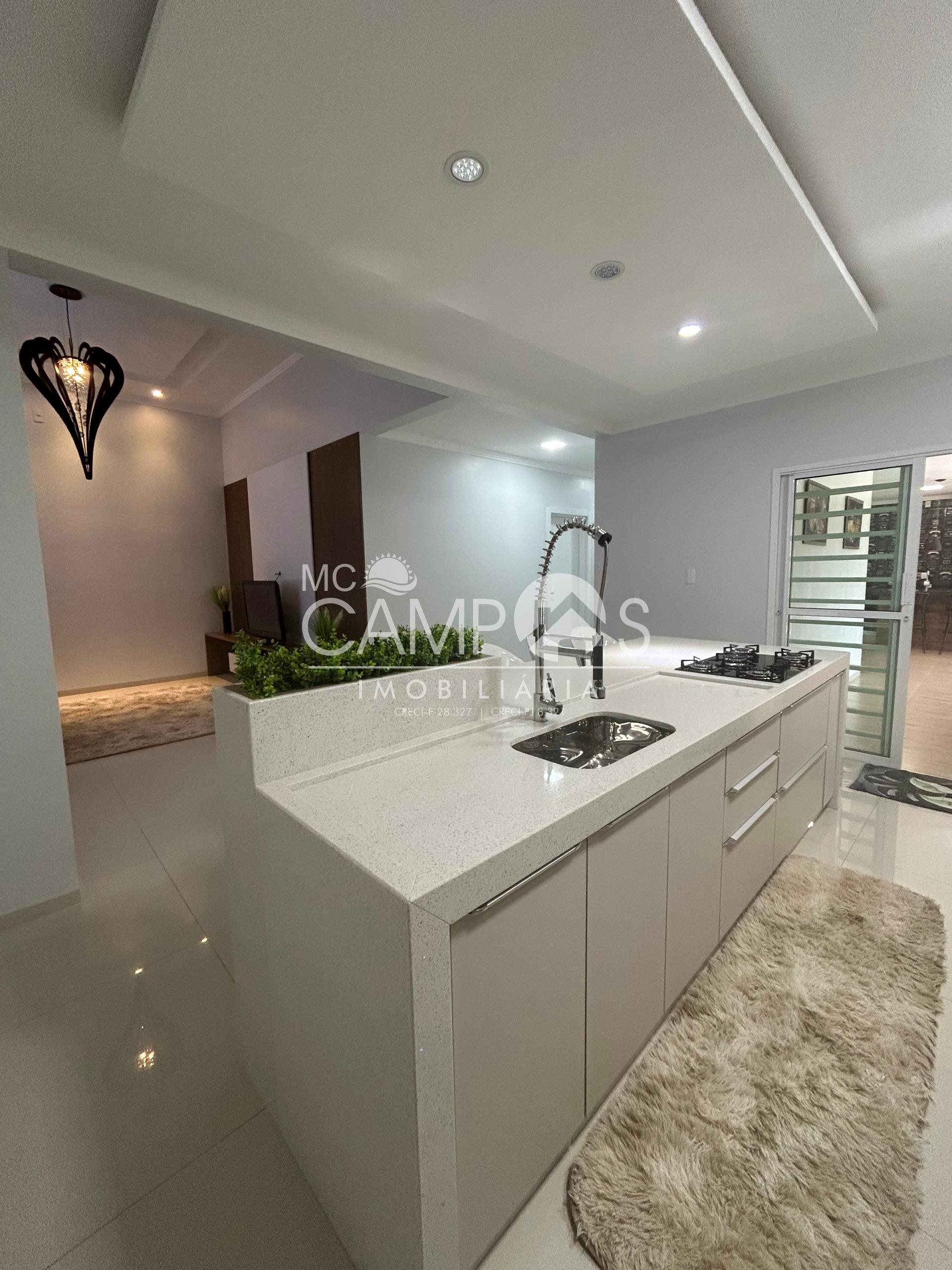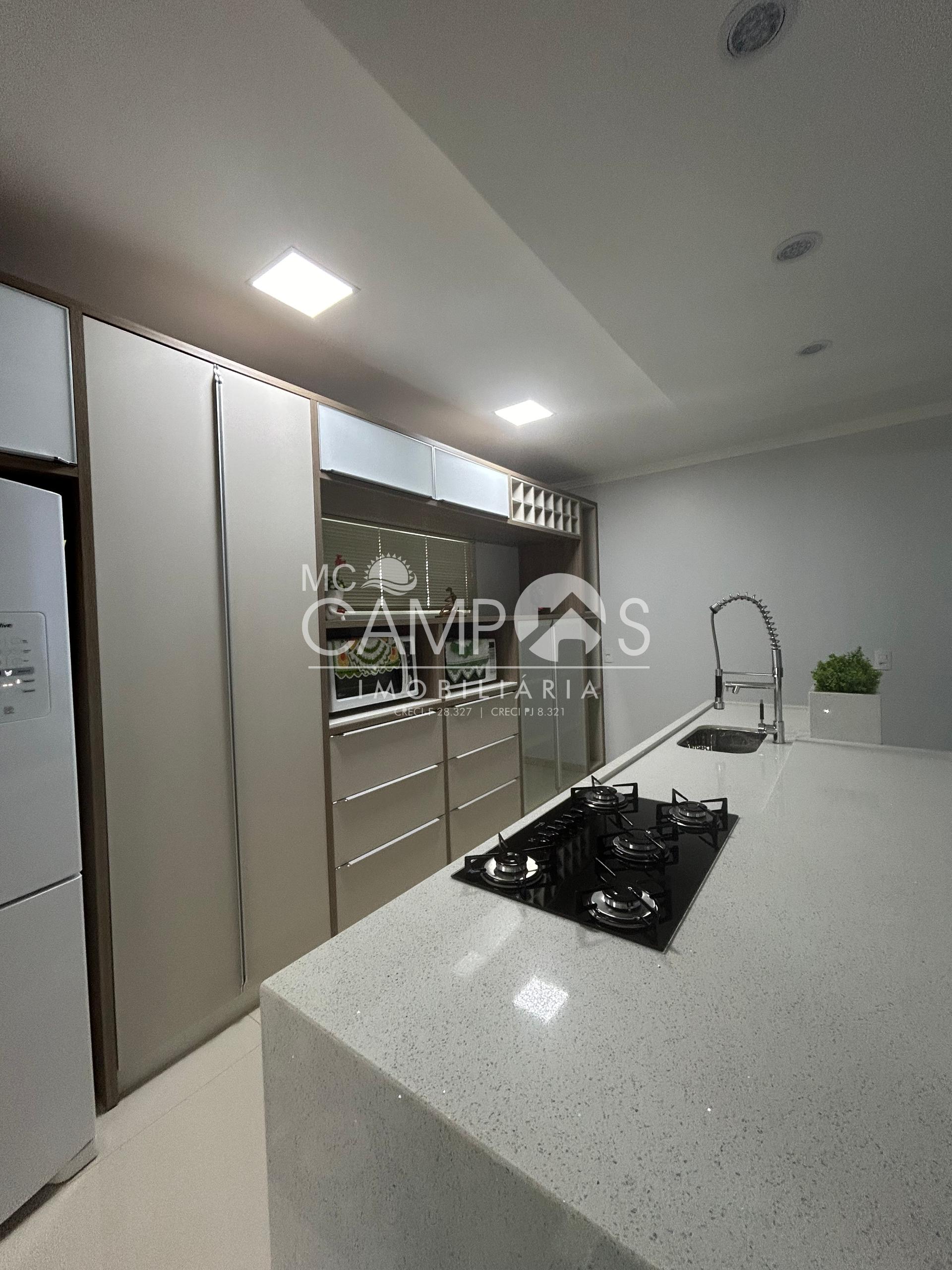 Cozinha com móveis planejados todo acabamento em mármore branco